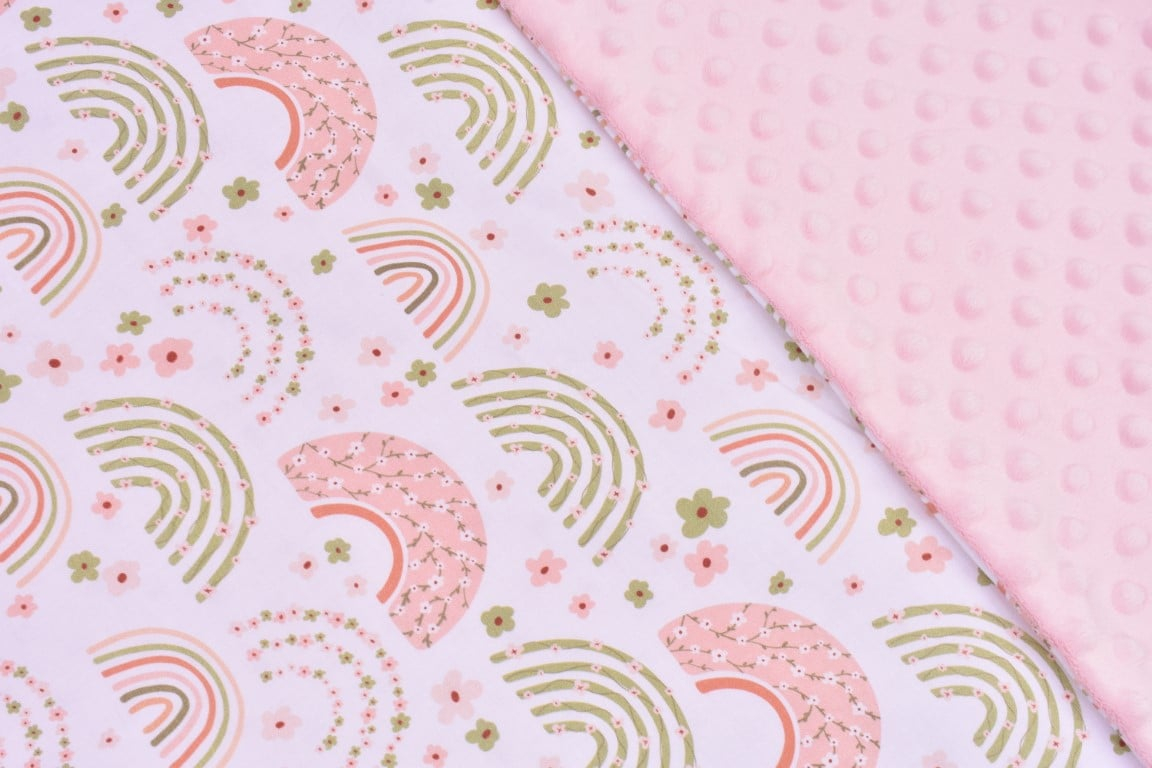 100% țesături sigure pentru copii, certificate Oeko-Tex. Pătura combină bumbac și plus minky, iar pernuta are interior nedetașabil.