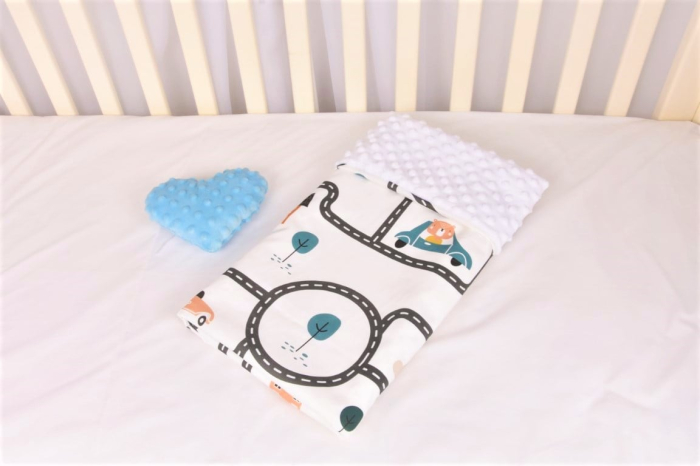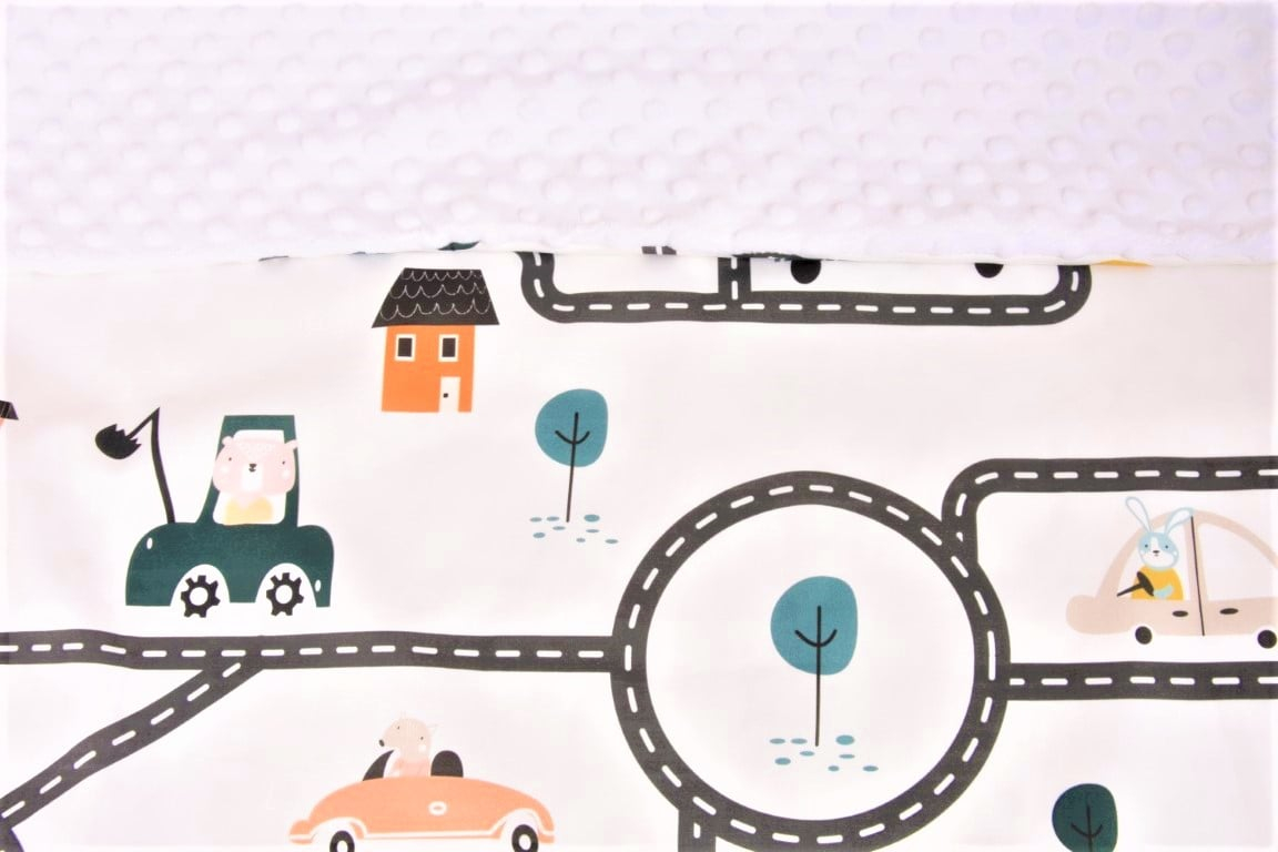 Păturică „Mașinuțe în oraș” – moale, calduroasă și sigură pentru micuțul tău