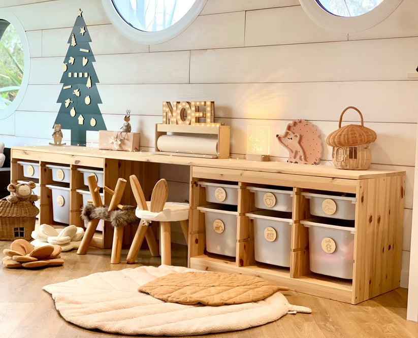 Instalarea este foarte ușoară: poziționați bradul la nivelul copilului, astfel încât acesta să îl poată decora singur și să îl folosească drept suport de joacă.