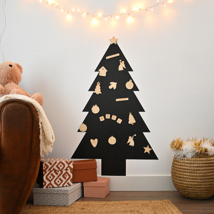 1 tablă magnetică în formă de brad (60 × 94 cm), însoțită de 6 steluțe magnetice – grosime 0,6 mm.