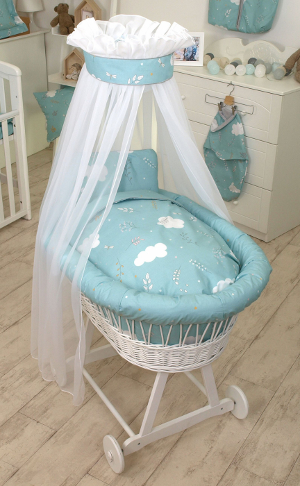 Moi, confortabile si de dimensiuni mai reduse decat patuturile pentru bebelusi, cosurile sunt cele mai potrivite ca loc de dormit pentru nou-nascuti. Le ofera suficient spatiu pentru a se intinde si respira in voie, dar nu destul pentru a se simti singuri si neprotejati. In primele luni de viata ale copilului, cosuletul este un accesoriu esential pentru confortul lui si libertatea ta de miscare. La ce anume este util: - daca se intampla sa culci bebelusul in aceeasi camera cu tine si totusi vrei sa aiba un spatiu propriu, sa fie protejat. - daca vrei sa mergi in alta camera. Este extrem de util sa muti un cosulet dintr-o camera in alta fara a-l trezi pe bebe. - atunci cand calatoresti. Bebelusilor nu le place sa le schimbi mediul. Faptul ca ai cu tine cosuletul cu care s-a obisnuit il ajuta sa doarma oriunde ar fi. - atunci cand incerci sa-l adormi leganandu-l. Sunt multi bebelusi care se trezesc atunci cand simt ca nu mai sunt tinuti in brate. Il adormi direct in cosulet. Fiind un model realizat din materiale naturale asigura o circulare buna a aerului in interior, care creeaza cele mai bune conditii pentru un somn odihnitor. Salteaua se numara printre accesoriile pe care cosuletul nostru de bebe o are inclusa. Baldachinul protejeaza impotriva vantului, soarelui puternic creand un mediu sigur in care cel mic poate dormi linistit. Cosuletul vine fixat pe un stand confectionat din lemn masiv si vine cu roti incluse. Cosuletul este insotit de diverse elemente de lenjerie precum: cearsaf, husa de pilota si perna, baldachin, margini textile de protectie, realizate din materiale naturale (bumbac), atestate hipoalergenic. Cosuletul vine complet accesorizat, cu: husa de perna si pilota realizate din 100% bumbac cu o tesatura de fire densa, facand materialul mai durabil si mai sigur pentru a fi supus unor spalari repetate, calcare fara teama. Umplutura este fixata in huse printr-un sistem sigur. Aceasta forma de fixare garanteaza utilizarea n conditii de siguranta n timpul somnului si jocului, fara sa va faceti griji cu privire la iesirea umpluturi din husa. Dimensiunea baldachinului va permite sa acoperiti complet cosul cu o circumferinta de 260 cm. Baldachinul este realizat din tul alb, datorita caruia este aerisit si permite trecerea luminii. Are mai multe functii printre care: estetic, decorativ si practic. Finisajul frumos al cosului ofera camerei o atmosfera unica, fermecatoare. Una dintre valorile practice ale baldachinului este posibilitatea folosirii acestuia ca plasa de insecte. Cu un baldachin care acopera in intregime cosul si o protectie suplimentara n partea superioara a baldachinului, insectele nu sunt capabile sa intre si sa-ti tachineze copilul. ntregul baldachin este ncununat cu un ornament frumos care se refera la colectie, sub forma unei benzi decorative si fundite atasate. ntr-o situatie n care ne mpartim dormitorul cu comoara noastra, un astfel de baldachin i va permite micutului spatiu propriu si putina intimitate pentru parinti. Protectia textila a cosului asigura un somn sigur si odihnitor pentru copil. Materialul este placut la atingere, nu irita pielea bebelusului, 100% bumbac cu parametri de utilizare sporiti. Umplutura este izolanta hipoalergenica Baby Soft. Grosimea selectata corespunzator face ca copilul sa se simta confortabil si in siguranta. Husa saltelei este confectionata din frotir certificat, matlasat pe o parte, care nu irita pielea delicata a bebelusului. n saltea, la fel ca n toate elementele de umplutura pentru lenjeria de pat, exista o umplutura hipoalergenica Baby Soft. Umplutura BabySoft este suficient de elastica si ferma pentru a asigura confort, functionalitate completa si a mentine o naltimea sigura ntre saltea si partea superioara a cosului. Daca dimensiunile permit, salteaua poate fi folosita si ntr-un landou. Stratul exterior al umpluturii este 100% tesatura de bumbac. n interiorul pernei se afla o umplutura Baby Soft, care va raspunde asteptarilor celor mai pretentiosi utilizatori - copiii. Baby Soft are grosimea, elasticitatea si moliciunea potrivita, asigur ndu-va ca copilul dvs. nu va raci iarna si nu se va supra ncalzi vara; Astfel il poti folosi pe tot parcursul anului. Cosul de rachita Sheep este realizat manual din rachita atent selectionata si vopsita cu lacuri colorate atestate, non-toxice. Cadrul pe roti medii este confectionat din lemn masiv atent selectat, slefuit si vopsit cu lacuri colorate si omologate. Produsul este format din urmatoarele materii prime: 100% bumbac + umplutura BabySoft - 100% fibra siliconica + Cos - rachita + cadru - lemn masiv Cos cu echipament Airy, contine: cos de rachita, cadru, saltea, suport pentru baldachin, baldachin, protectie textila (cu rochita), pilota si perna, husa de pilota si perna cu broderie Dimensiuni: Pilota su husa: 75 75 cm Perna si husa: 35 40 cm Baldachinul: 320 140, 260 46 (+23) cm Saltea: 69 38 cm 95x55x35 cm 60x40x55 cm Respecta cele mai stricte standarde de calitate si siguranta. Toate tesaturile folosite sunt, desigur, certificate conform OEKO TEX Standard 100.