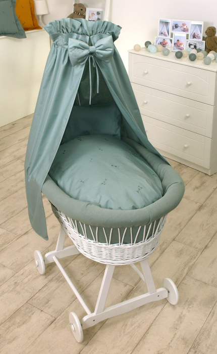 Cos bebe cu suport pe roti, saltea, lenjerie si baldachin, Pure Duo Verde Salvia