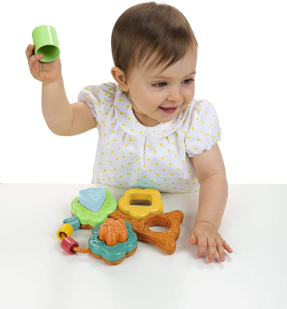 Dezvoltarea coordonării și a abilităților cognitive prin potrivirea formelor și manipularea inelelor.