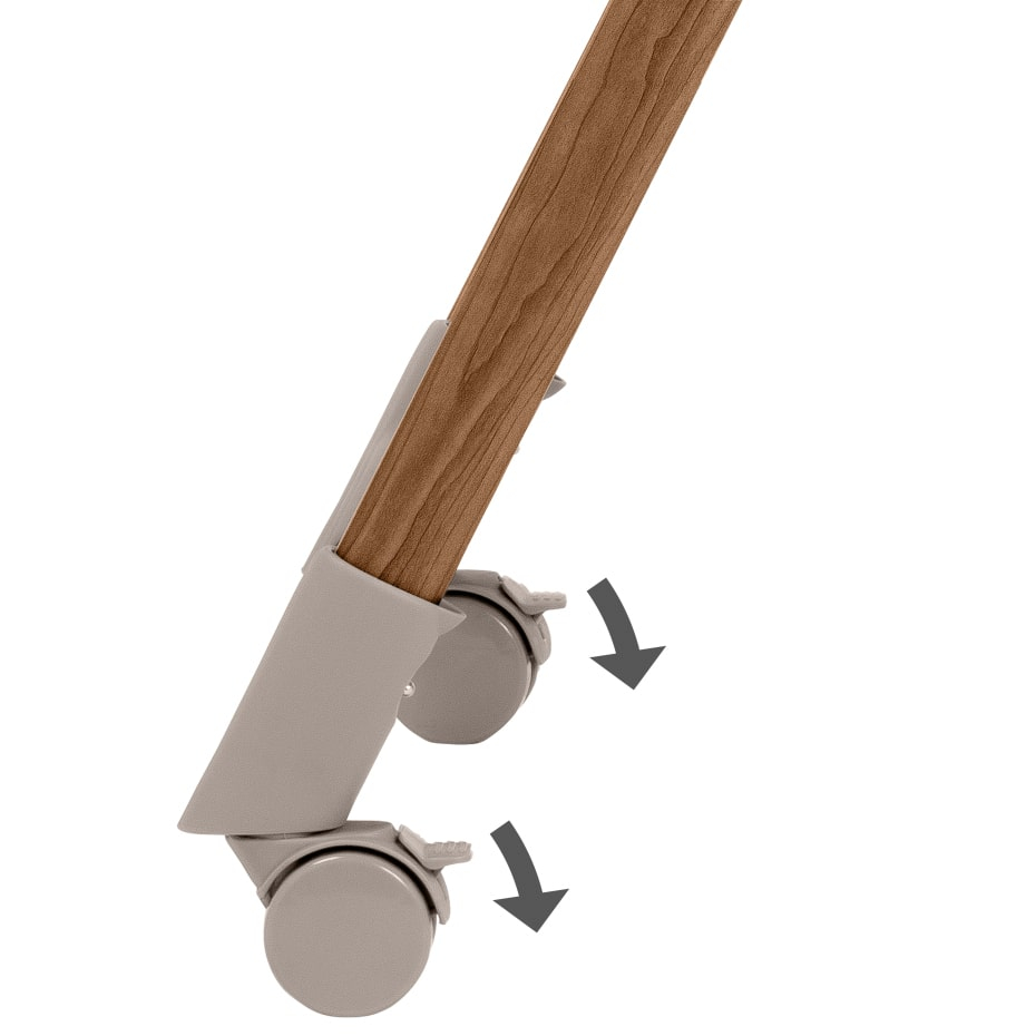 • 4 roți, dintre care 2 frontale pivotante cu frână, pentru mobilitate și stabilitate.