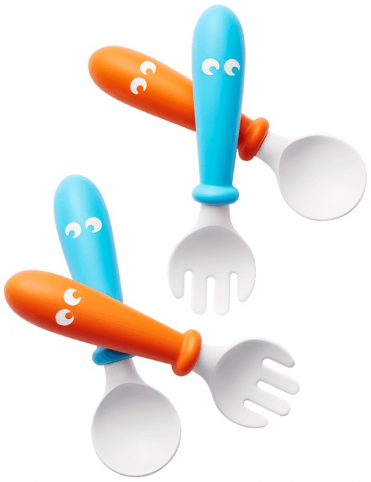 BabyBjorn Set Lingurite si Furculite pentru bebelusi (4 bucati), Orange/Turquoise